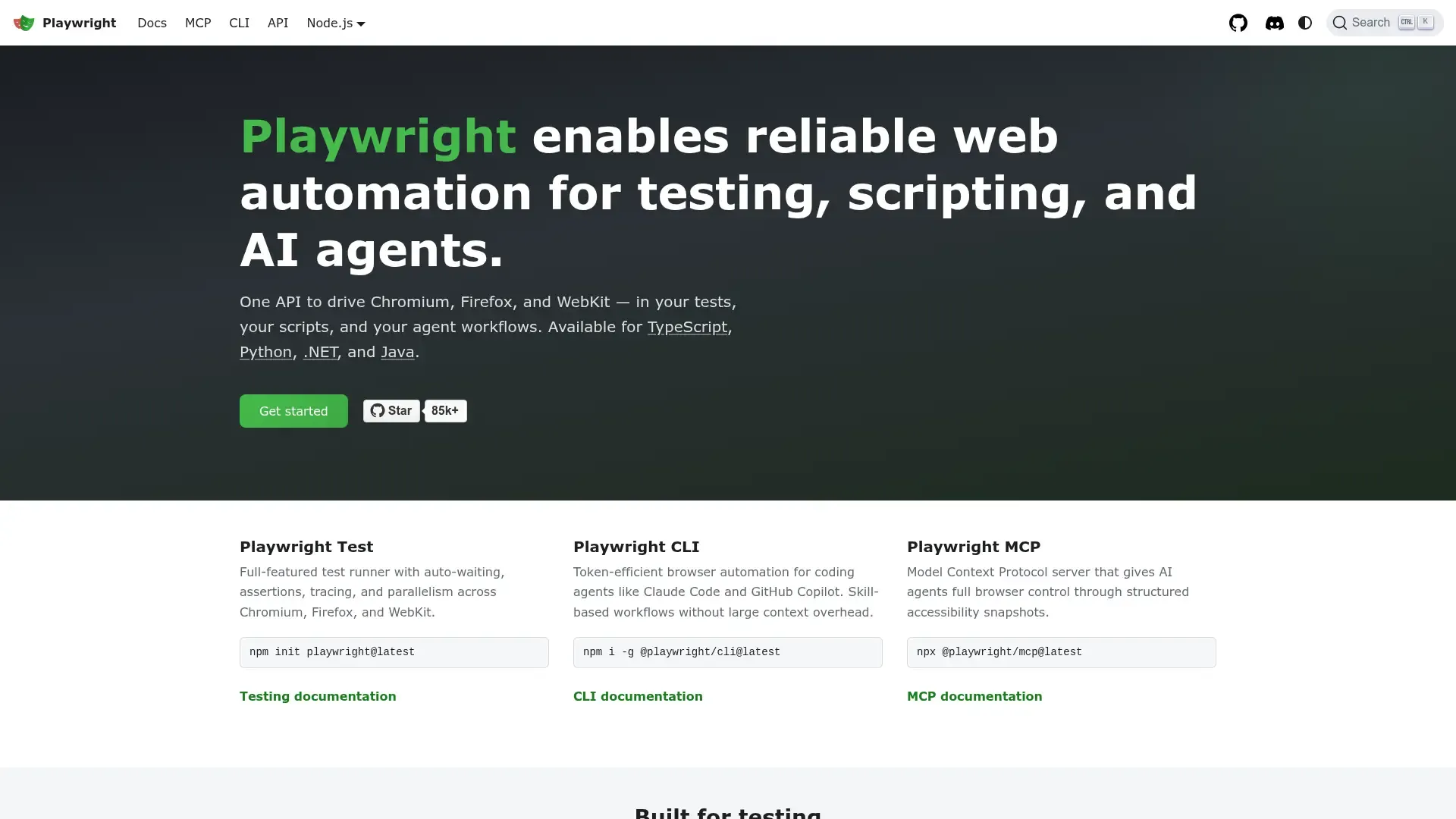 Infraestructura de automatización y testing de extremo a extremo desarrollada por Microsoft para ingenieros de software, analistas de calidad (QA) y perfiles de DevOps. Permite automatizar interacciones en navegadores web de forma rápida y fiable, eliminando la fragilidad en los tests mediante mecanismos de auto-espera y aserciones web-first. Es ideal para equipos que operan con metodologías Agile y CI/CD que buscan una alternativa moderna a Selenium o Cypress en entornos de desarrollo.